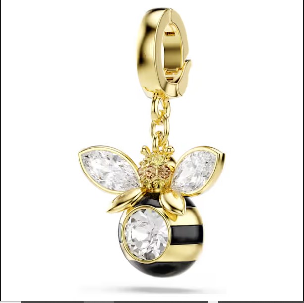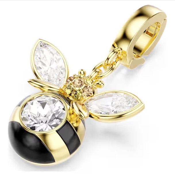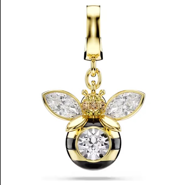 Este charm de abeja laboriosa añade un toque personal a tu estilo diario y es una elección ideal para los amantes de la naturaleza. Esta creación bañada en oro está decorada con rayas negras y amarillas y con alas hechas de cristales transparentes; presenta un cierre de diseño personalizado que te permitirá lucir el charm en varios collares y pulseras.