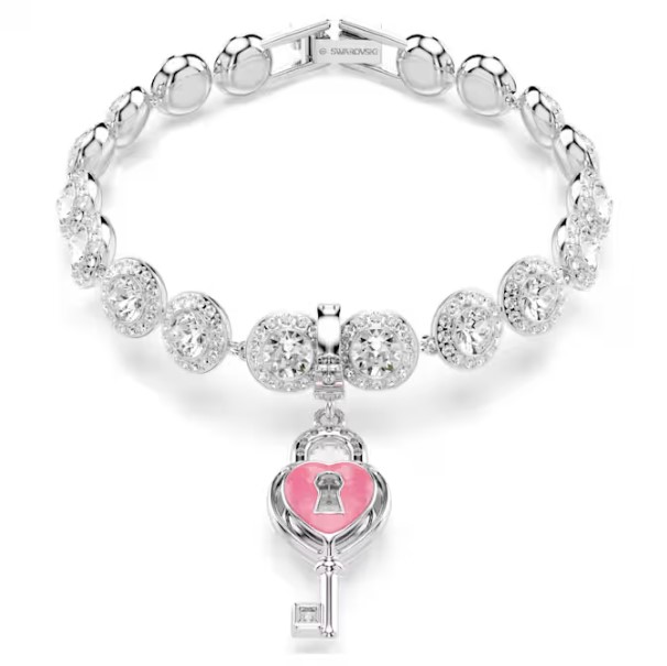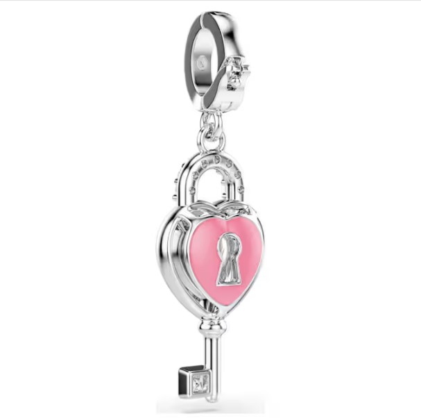 Este charm de llave en forma de corazón inspirado en un medallón añade un toque personal a tu estilo diario y es una elección ideal para aquellos con un espíritu romántico. Esta creación bañada en rodio está decorada con cristal central y presenta un cierre de diseño personalizado que te permitirá lucir el charm en varios collares y pulseras.