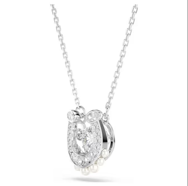 Maximiza tu brillo con este colgante de herradura con significado. Con un motivo bañado en rodio y decorado con cristales transparentes y mini perlitas, en el centro del diseño, muestra una Dancing Stone facetada que crea un maravilloso juego de luces. Lleva este colgante tú misma o regálalo a alguien especial como símbolo de suerte y éxito.