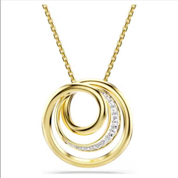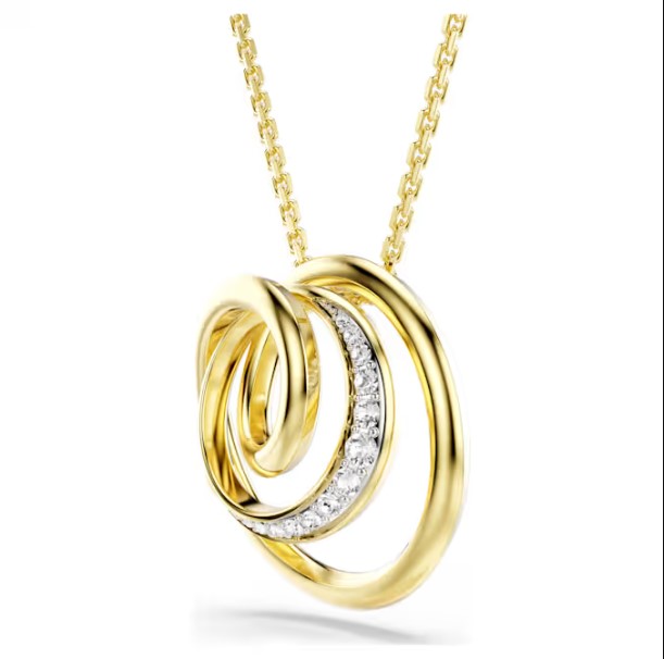 Este colgante Hyperbola, elaborado con una silueta en espiral, combina el brillo clásico del baño en oro con el dominio de la luz de Swarovski. El hipnótico diseño se acentúa con cristales de distintos tamaños, mientras que el elegante trabajo del metal aporta sofisticación para todo el día. Llévalo con unos pendientes o un anillo a juego para maximizar el efecto.