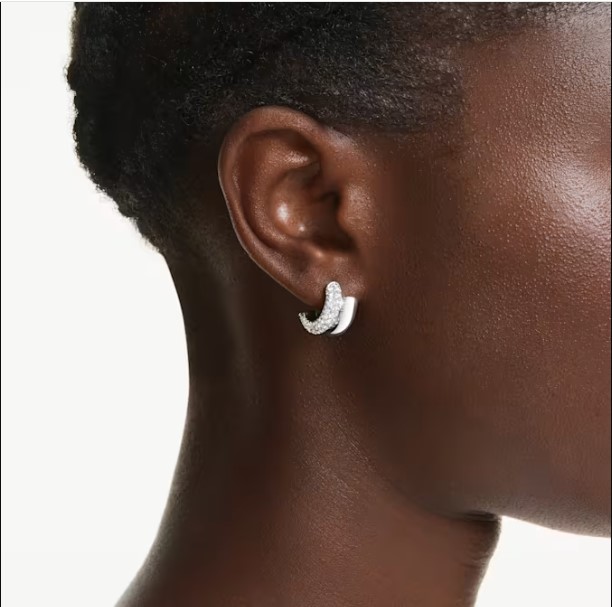 Estos pendientes tubulares, que encarnan el estilo industrial de Dextera, combinan una superficie con baño de rodio brillante con cristales transparentes engastados en pavé en uno de sus lados. Un mecanismo adicional de placa de muelle garantiza que cada pieza sea fácil de poner y quitar. Lleva estos aros mini como una elección distintiva para tus looks de día y de noche.