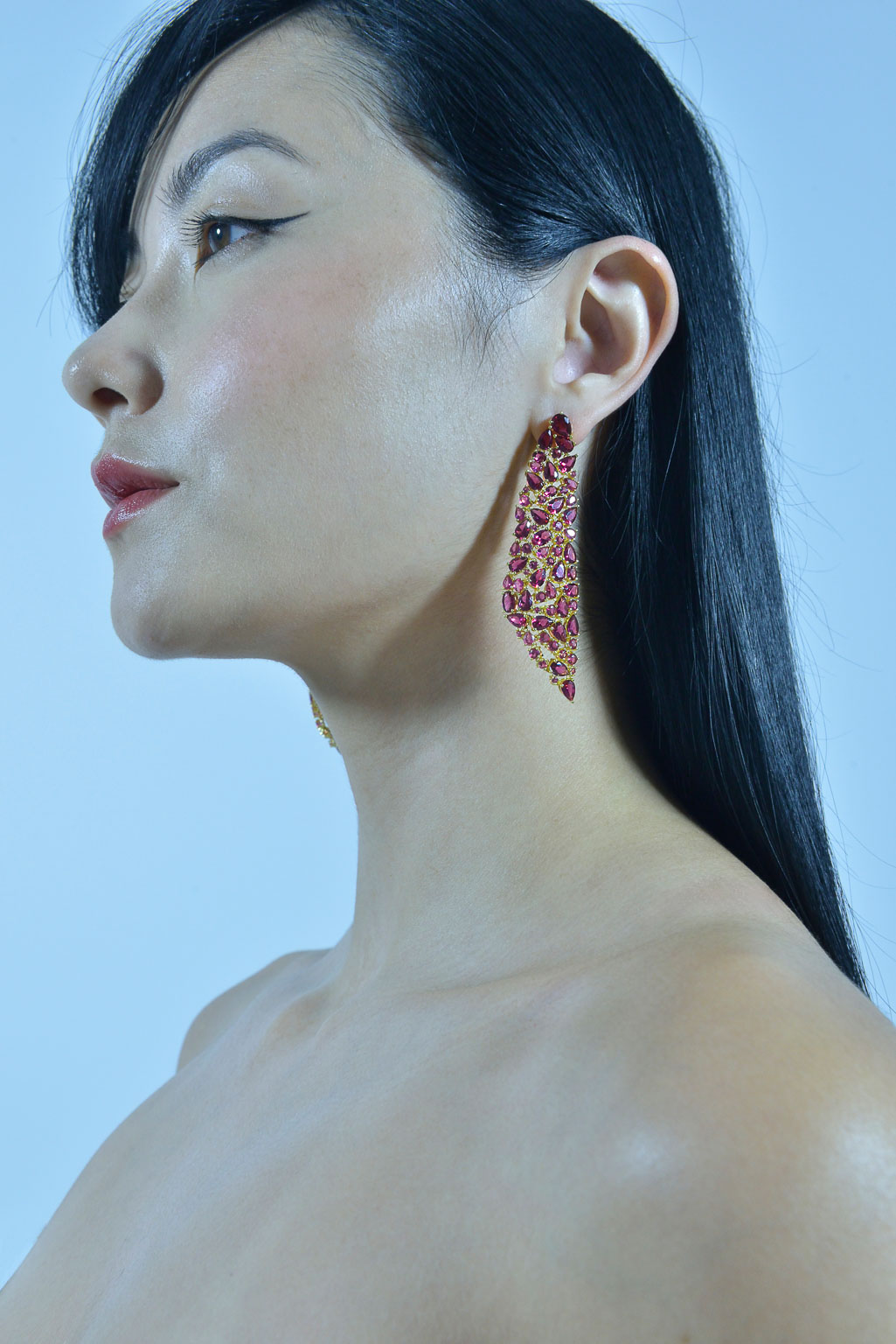 Pendientes en cascada de la colección Silken Code de Salvatore. Estos espectaculares pendientes están fabricados en Plata de Primera Ley (925), baño de oro y circonitas color rubí. Lúcelos en tus eventos y se el centro de atención!