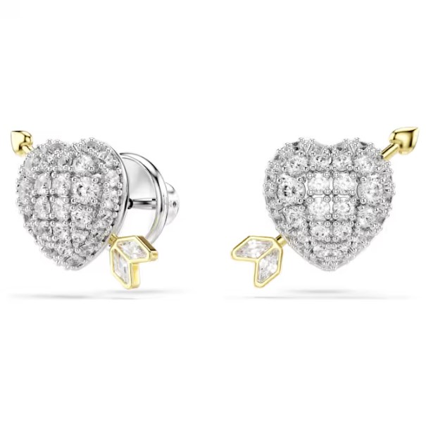 Celebra el amor verdadero con estos pendientes de botón Idyllia en forma de corazón. Cada pieza presenta un corazón bañado en rodio con circonitas brillantes, atravesado por la flecha de Cupido bañada en oro. Una forma sutil pero expresiva de definir tu estilo personal.
