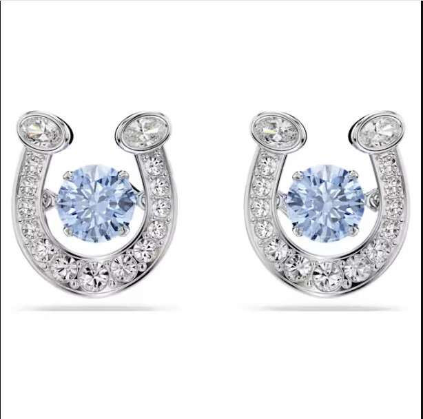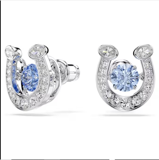 Abraza el espíritu libre del caballo con estos impresionantes pendientes de Swarovski. Cada herradura bañada en rodio presenta una Dancing Stone azul en el centro que crea un constante juego de luces. Un regalo lleno de color para quienes persiguen el éxito.