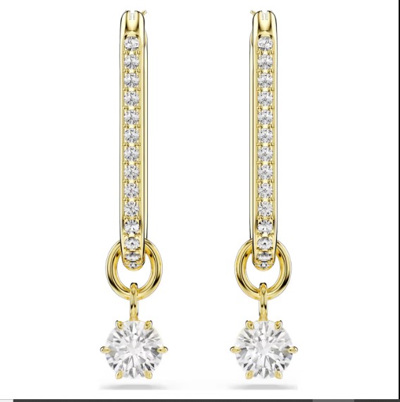 Ilumina cada día con la intensidad brillante de estos pendientes bañados en oro. Cada aro alargado está adornado con un brillante pavé y una circonita engastada en garra que cuelga delicadamente por debajo. Una maravillosa alternativa al clásico estilo de aro, inspirada en la elegancia estelar de la familia Constella.