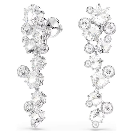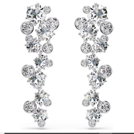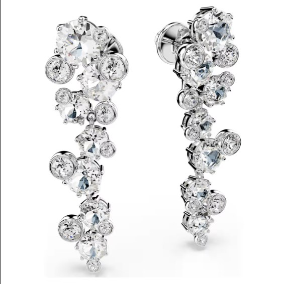 Ilumina tu estilo con estos pendientes Constella que atrapan la luz. Inspirados en un universo de estrellas, los strands bañados en rodio presentan cristales transparentes en varios tamaños, cada uno con engaste de garra o bisel. Llévalos junto con el collar Constella a juego para maximizar el brillo de tu armario.
