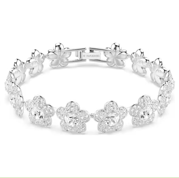 Como una radiante cadena de margaritas, esta pulsera que refleja la luz presenta un strand integral de delicadas flores, cada una elaborada con un centro de cristal y pétalos adornados con resplandeciente pavé. Este diseño inspirado en la naturaleza es ideal para el lujo diario y se puede llevar con el collar a juego para una combinación atemporal.
