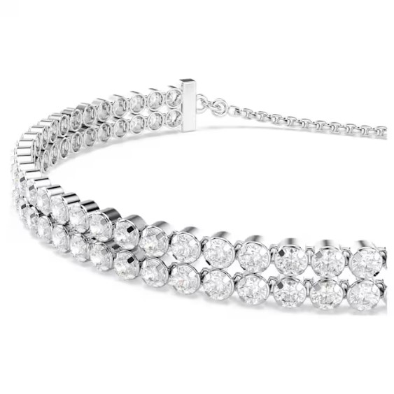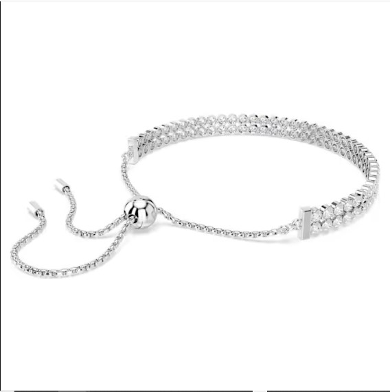 Esta pulsera atemporal bañada en rodio es un regalo ideal para los amantes de la luz. Dos delicadas hileras de circonitas están engastadas en un elegante diseño cupchain, con una caída fantástica en la muñeca. La pulsera se completa con un innovador cierre de bola deslizante que permite adaptar el tamaño para un ajuste perfecto. Llévala para aportar sofisticación a tu look de día o combínala con estilos en contraste para realzar tu glamour por la noche.