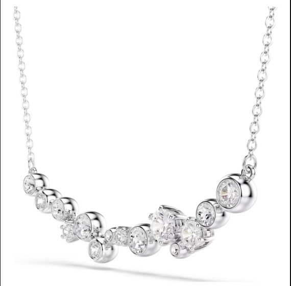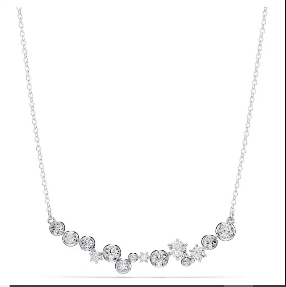 Dale energía a tu vestuario diario con este impresionante collar Constella con baño de rodio. El diseño estrellado presenta una muestra central de cristales transparentes en varios tamaños, cada uno con engaste de garra o bisel. Este reluciente conjunto está engastado en una delicada cadena y es una perfecta muestra de fascinación cósmica.