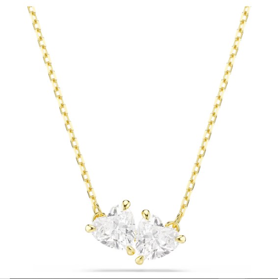 Este collar Swarovski de la familia Mesmera ofrece un diseño clásico con un toque moderno. Con bonitas circonitas en forma de corazones gemelos, el diseño se complementa con un baño de oro y la discreta elegancia de su cadena. Este encantador collar es el regalo romántico perfecto para alguien a quien quieras.